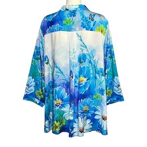 Ali Miles Plus Size 2X Artsy Colorful Butterfly Print Aqua Button Up Tunic Top