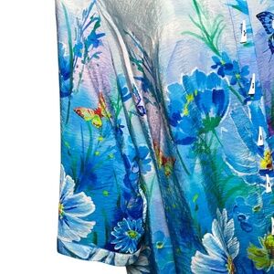 Ali Miles Plus Size 2X Artsy Colorful Butterfly Print Aqua Button Up Tunic Top
