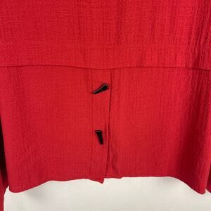 Ali Miles Red Black Toggle Button Closure Roll Tab Sleeve Blouse Women's 1X