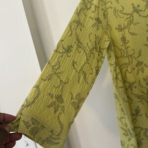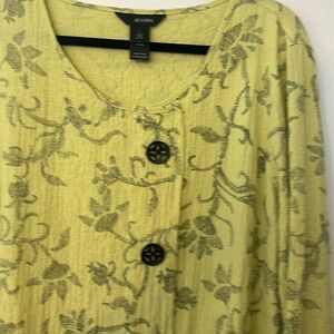 Green & black relaxed fit floral print top with detailed buttons in VGUC.