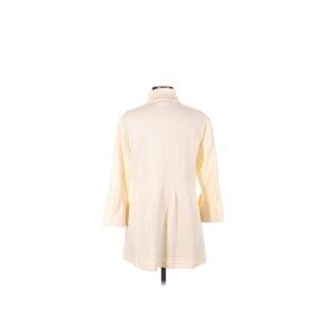 Ali Miles Scarlet Textured Knit Ruffle Neck Jacket Size Medium Ivory Rayon Blend