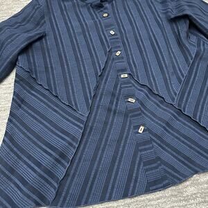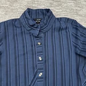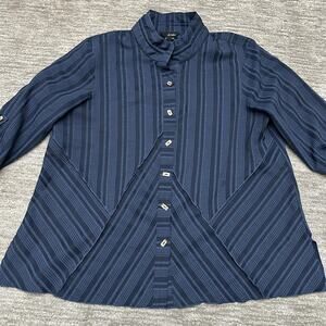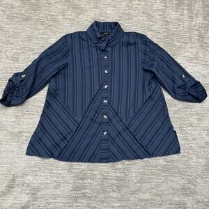 Ali Miles Shirt Womens XL Blue Striped Button Up Textured Long Sleeve Blouse Top