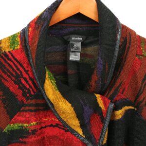 Ali Miles Southwestern Aztec Faux Leather Trim Cowl Neck Cardigan Sweater