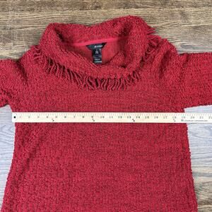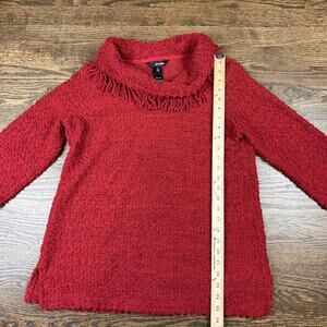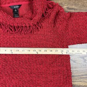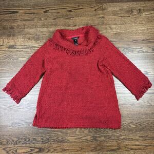 Ali Miles Sweater Womens Small Red Fringe Cowl Neck 3/4 Sleeve Textured Pullover