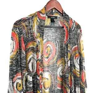 Ali Miles Sz XL Open Front Wearable Art Abstract Blouse Shirt Top Artsy Sheer