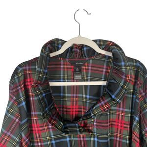 Ali Miles Tartan Plaid Blouse Ruffle Neck Holiday Jersey Stretch Womens Plus 2x