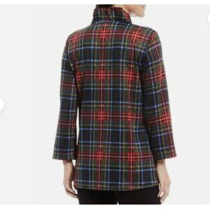 Ali Miles Tartan Plaid Scoop Ruffle Neck 3/4 Sleeve Red size large pletie