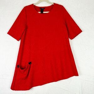 Ali Miles Textured Asymmetric Top Size Medium Pocket Lagenlook Artsy Red Stretch