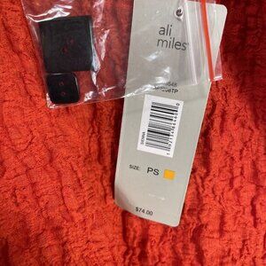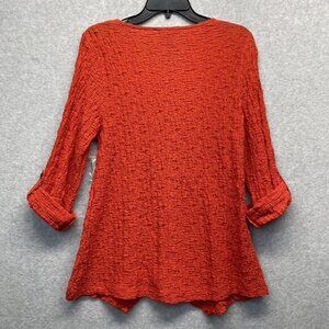 Ali Miles Textured Crinkle Top Womens Petite Small Red Blouse Roll Tab Sleeve