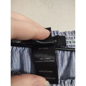 Add some colorful flair to your wardrobe with this Ali Miles top. The multicolored striped pattern and embroidered accents create a classic yet fun look that's perfect for casual occasions. The blouse features a scoop neck, 3/4 sleeves, and a pullover closure for easy wear. Made from cotton with a woven fabric type, it's machine washable and easy to care for. This top is a size medium and has a regular fit, suitable for all seasons. Whether it's winter, summer, fall, or spring, this sheer blouse is a great addition to any basic style.