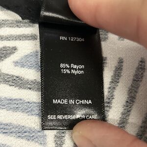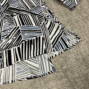 Ali Miles Top Shirt Womens Large Blue White Black Tunic 3/4 Sleeves Asymmetric
