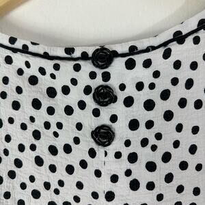 Ali Miles Top Womens Large White Black Polka Dots Rose Buttons Pullover 3/4 Flutter Sleeve Casual Artsy Lagenlook