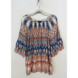 Ali Miles Top Womens XL Abstract Ikat Bell Sleeve Off The Shoulder Boho Peasant
