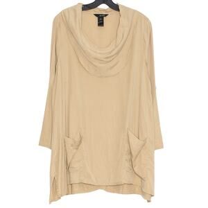 Ali Miles Tunic Top 3/4 Sleeve Cowl Neck Lagenlook Minimalist Neutral Tan Large