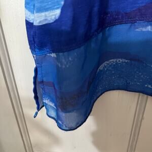 Ali Miles Tunic Top Abstract Print 3/4 Sleeve V-Neck Colorful Artsy Medium Knit