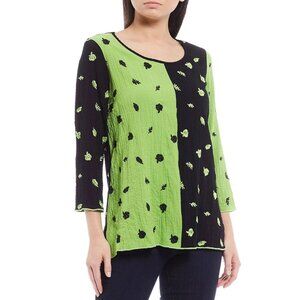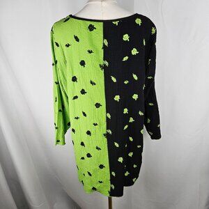 Ali Miles Tunic Top Large Green Floral Embroidered Long Sleeve Colorblock