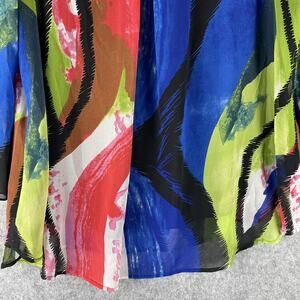 Ali Miles Tunic Top Womens 1X Abstract Layered Bell Sleeve Colorful Artsy Flowy