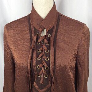 Ali Miles Tunic Top Womens Size XL Brown Metallic Lace Up Slit Hem