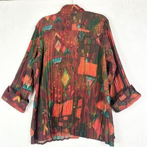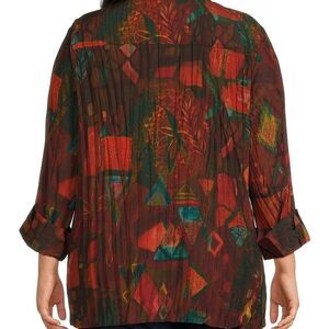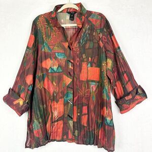 Ali Miles Wire Collar Top Size 1X Printed Artsy Art To Wear Maximalist Pleated