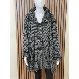 Ali Miles Women's 1X Black Cardigan Knitted Sweater Tunic Zebra Print Boho Artsy