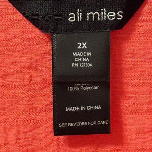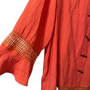 Ali Miles Womens 2X Coral Kimono Jacket With Crocheted Accents blouse. NWT
