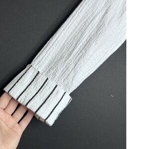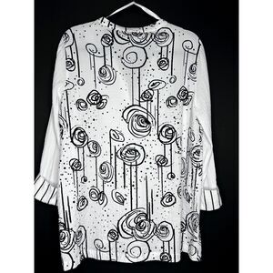 Ali Miles Women's Artsy Abstract Funky Art to Wear Crinkle White Spiral Tunic M