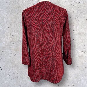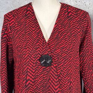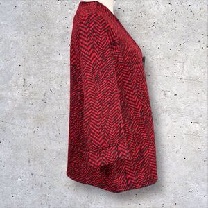 Ali Miles Womens Cardigan Red Black Chevron Knit Jacket One Button Small