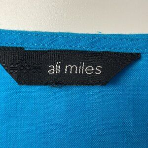 Ali Miles Womens Coastal Beachy LINEN Tunic Top 1X Vibrant Blue Travel Vacation