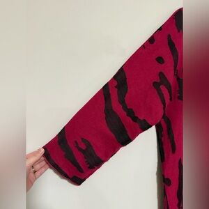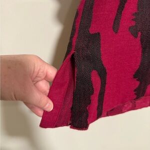 Ali Miles Women's Fuschia Black Linen Blend Top Medium Artsy Modern Abstract