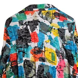 Ali Miles Womens Knit Abstract Multicolor Print Button-Down Tunic Top Sz L Artsy