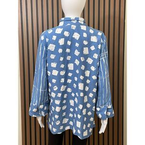 Ali Miles Women's L Blue Button-Up Tunic Shirt Abstract Wearable Art Polka Dot