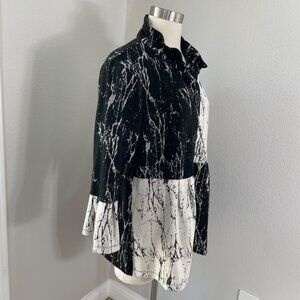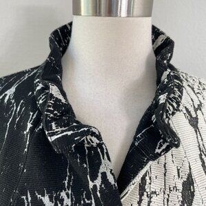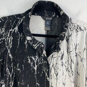 Ali Miles Womens Large Black White Marble Print Button Jacket Wire Collar Artsy