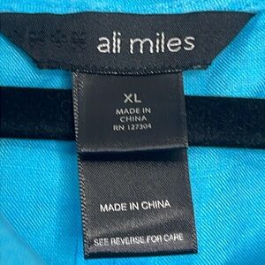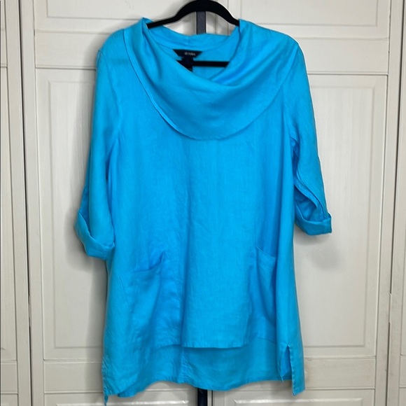 Ali Miles Womens LinenTunic Blouse 3/4 Sleeve Cowl Neck Blue Size XL Lagenlook