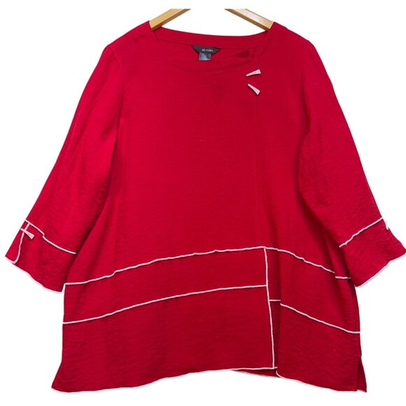 Ali Miles Women's Office Oversized Tunic Top Long Sleeve Size 1X Red Lightweight