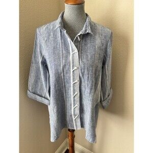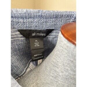 Ali Miles Women's Petite Large Blue Striped 3/4 Sleeve Linen Blend Top - NWT