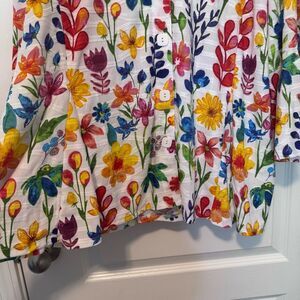 Ali Miles Women's Size 2X White Floral Textured 3/4 Bell Sleeve Button Front Top
