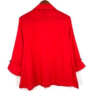 Ali Miles Womens Sz Medium Red Button Down Blouse Shirt Top Jacket Christmas