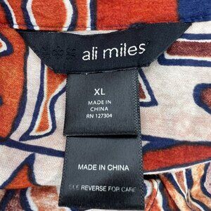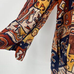 Ali Miles Women's XL Button Down Shirt Rust Navy Mosaic Wearable Art Lagenlook
