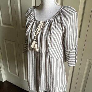 Ali Miles beige striped bell sleeves peasant top size S