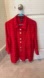Stylish red blouse featuring pearled buttons. Perfect for any occasion. Business casual. Great for layering. Generous A Line fit. Wearing buttoned or open. 3/4 length Sleeves with Button detail at cuff. Button detail in back with long pleated back.