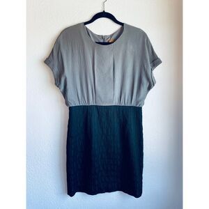 Ali Ro Black & Gray Silk Paneled Colorblock Dolman Sleeve Knee Length Dress 10