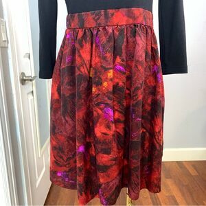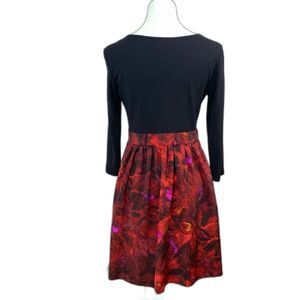 Ali Ro Fit & Flare Dress Black Bodice Red Abstract Silk Skirt Size 8