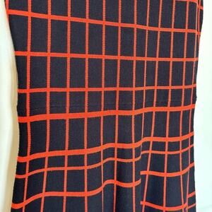 Ali Ro Navy Blue Orange Plaid Sleeveless Knit Fit Flare Tank Dress S