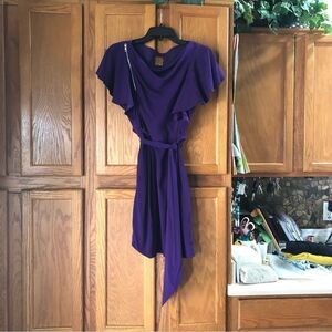 Ali Ro Purple Drape Neck Flutter Sleeve Silk Blend Mini Dress
