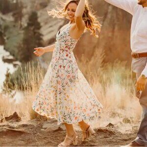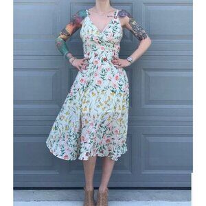 Ali and Jay Rose Colored Glasses Dress Floral Fit Flare Midi Sundress Ivory LG