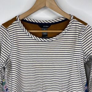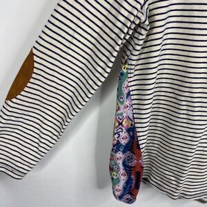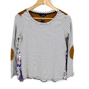 Ali Miles Top Size Small Petite Womens Navy White Stripe Suede Elbow Patch