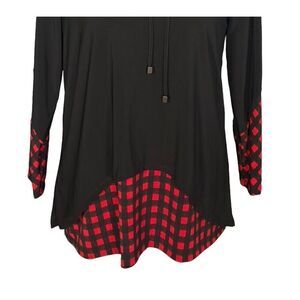 Ali Miles Tunic Size Petite Small Buffalo Plaid Red Black Cowl Neck Stretch