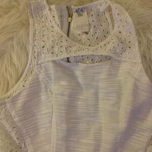 Very cute prefect for Summer White Zip Open in bust areas Size 4 Does have pockets