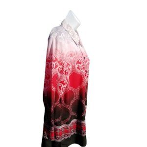 Alia Boho Tunic Shirt Geometric Print Button Up Long Sleeves Red Black Size 10
