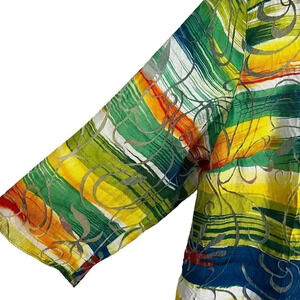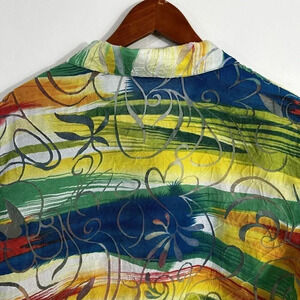Alia Colorful Tropical Sheer Button Up Shirt 20W Womens Burnout Blouse Bright